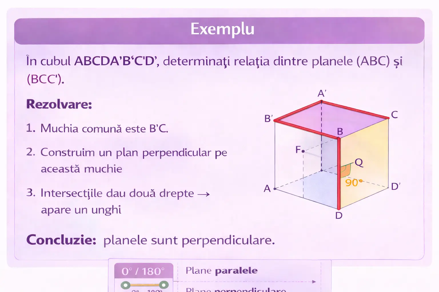 În cubul ABCDA'B'C'D', determinați relația dintre planele (ABC) și (BCC').